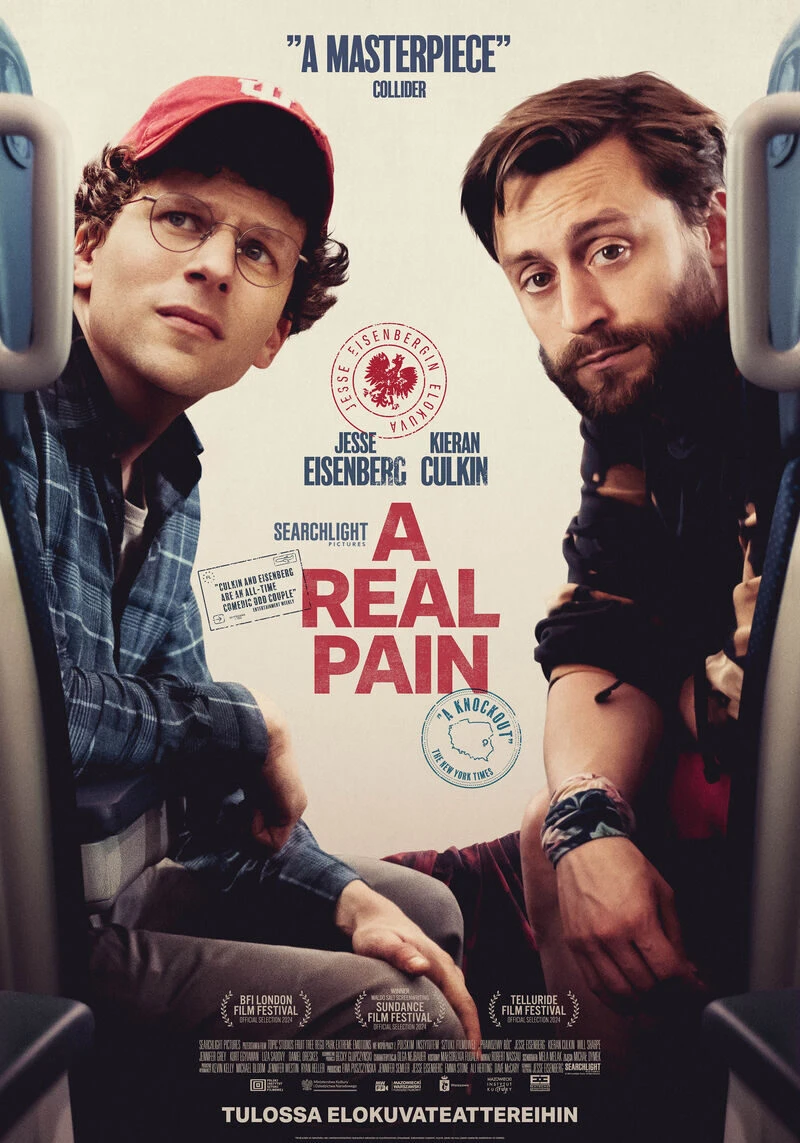 A REAL PAIN seuraa yhteensopimattomien serkusten Davidin (Jesse Eisenberg) ja Benjin (Kieran Culkin) matkaa Puolaan rakkaan isoäitinsä kunniaksi. Seikkailun luonne muuttuu, kun erikoisen parivaljakon vanhat jännitteet nousevat pintaan heidän sukuhistoriansa taustoja vastaan.