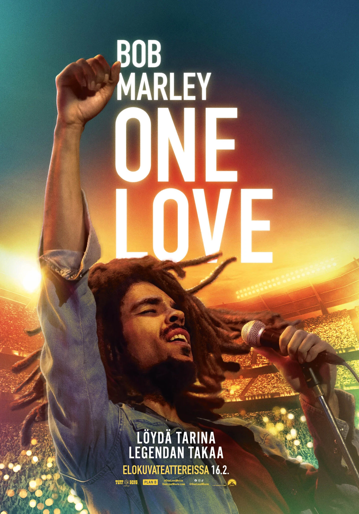 BOB MARLEY: ONE LOVE kuvaa rakkauden ja yhtenäisyyden sanomallaan sukupolvia inspiroineen ikonin elämää ja musiikkia. Ensimmäistä kertaa valkokankailla nähdään Bobin vaikuttava tarina vastoinkäymisten voittamisesta sekä matkasta hänen vallankumouksellisen musiikkinsa takana. Elokuva on tuotettu yhteistyössä Marleyn perheen kanssa, ja sitä tähdittävät Kingsley Ben-Adir legendaarisena muusikkona sekä Lashana Lynch hänen Rita-vaimonaan.