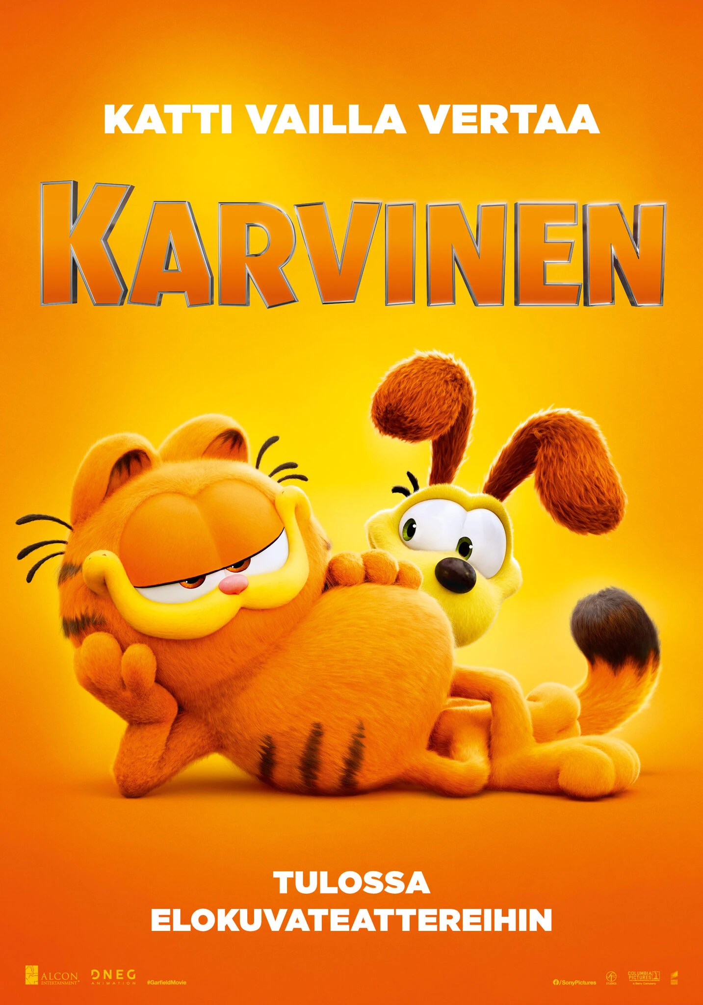 Karvinen, maailmankuulu maanantaita inhoava ja lasagnea rakastava kotikissa, on lähdössä villiin seikkailuun! Kohdattuaan yllättäen uudelleen kauan sitten kadonneen isänsä, resuisen katukissa Vikin, Karvinen ja hänen koirakaverinsa Osku joutuvat jättämään täydellisen hemmotellun elämänsä auttaakseen Vikiä riemastuttavassa ryöstökeikassa, jossa pelataan korkeilla panoksilla.