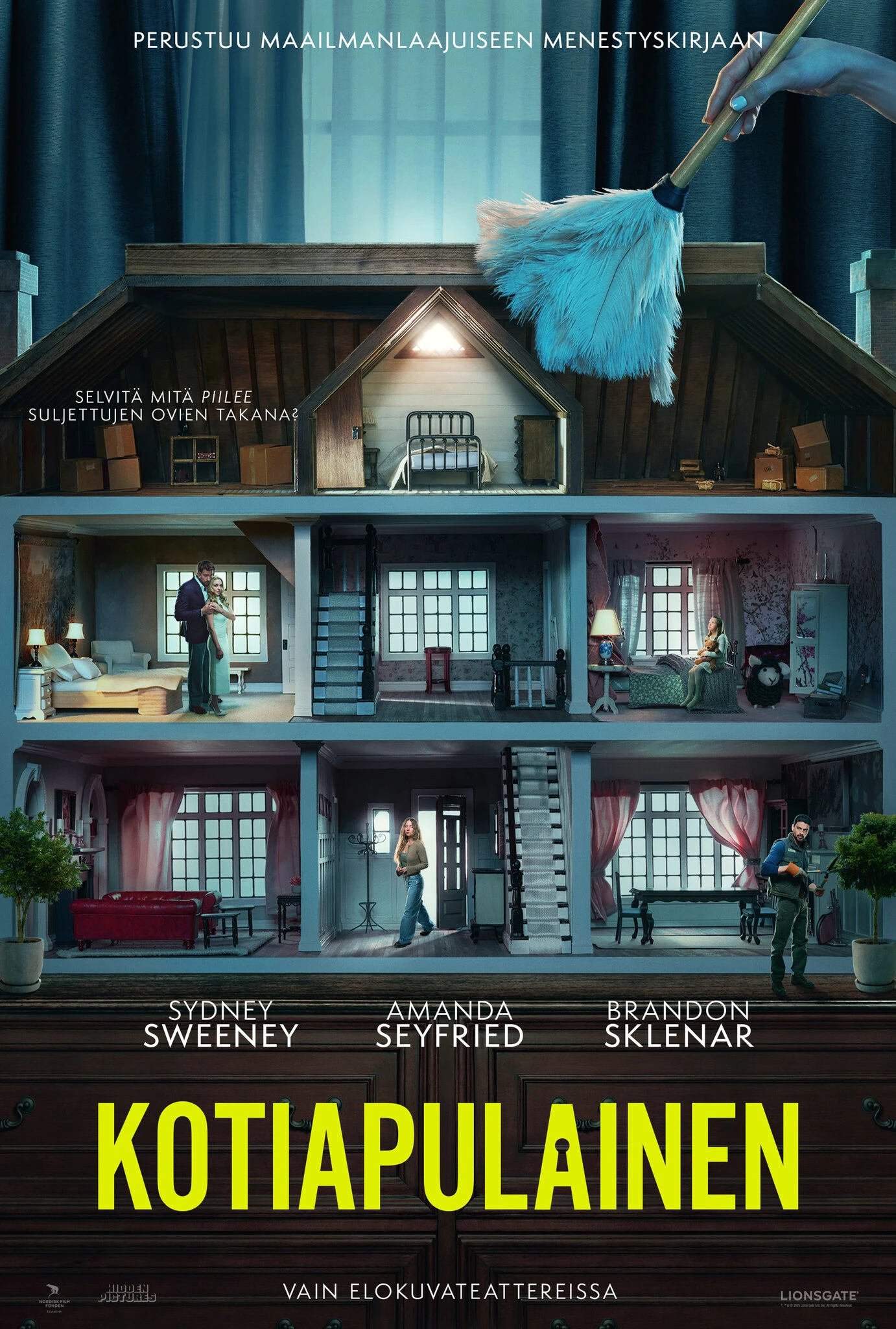 Perustuu maailmanlaajuiseen menestyskirjaan Kotiapulainen. Paul Feigin ohjaama KOTIAPULAINEN elokuvateattereissa 2.1.2026. Pääosissa Sydney Sweeney, Amanda Seyfried ja Brandon Sklenar.