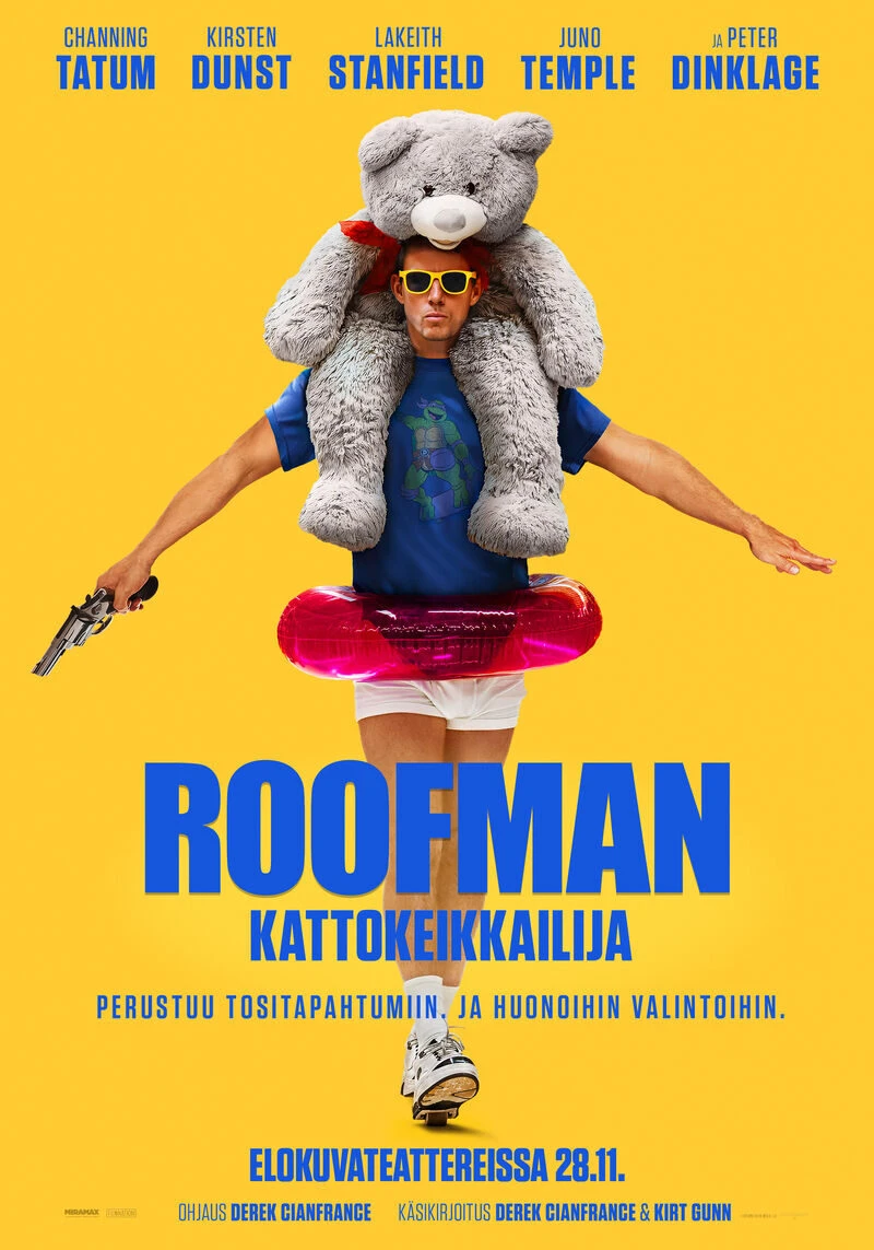 Channing Tatumin tähdittämä Roofman - Kattokeikkailija perustuu uskomattomaan tositarinaan vankikarkuri Jeffrey Manchesterista ja hänen villistä pakomatkastaan. Vankilasta paennut entinen sotilas ja ammattivaras Jeffrey löytää piilopaikan lelukaupan sisältä ja onnistuu elämään siellä kuukausien ajan kenenkään huomaamatta – samalla tehden murtokeikkoja kattojen kautta. Huolellisesti rakennettu kaksoiselämä alkaa kuitenkin rakoilla, kun hän rakastuu Leighin (Kirsten Dunst). Alkaa jännittävä takaa-ajo ja menneisyyden tapahtumat saavat Jeffreyn kiinni. Elokuvan on ohjannut Derek Cianfrance (Blue Valentine, The Place Beyond The Pines, Sound of Metal).