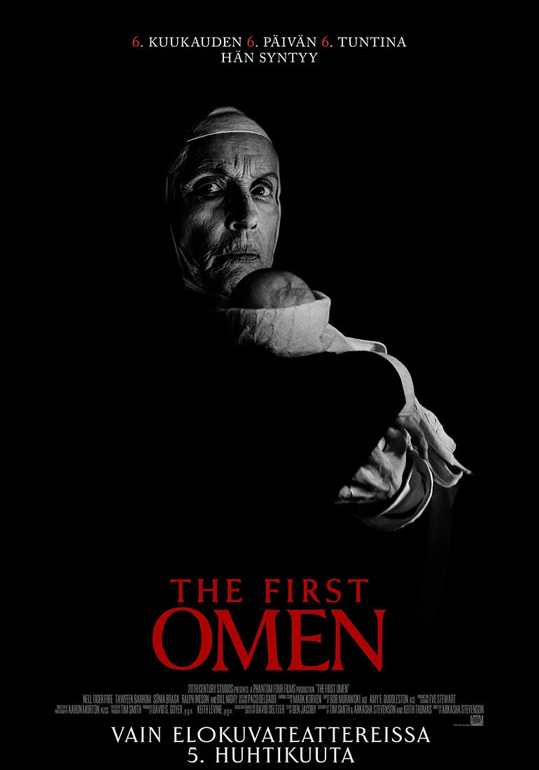 Kun nuori amerikkalaisnainen lähetetään Roomaan omistamaan elämänsä kirkolle, tapaa hän pimeyden, joka saa hänet kyseenalaistamaan uskonsa. Samalla paljastuu myös kauhistuttava salaliitto, jonka päämääränä on pahan ruumiillistuman syntymä. The First Omen -elokuvan pääosissa nähdään Nell Tiger Free (TV-sarja “Servant”), Tawfeek Barhom (Maria Magdaleena ) Sonia Braga (Hämähäkkinaisen suudelma), Ralph Ineson (The Northman) ja Bill Nighy (Living). Psykologinen kauhuelokuva, The First Omen, on klassikkokauhuelokuvasarjan esiosa.