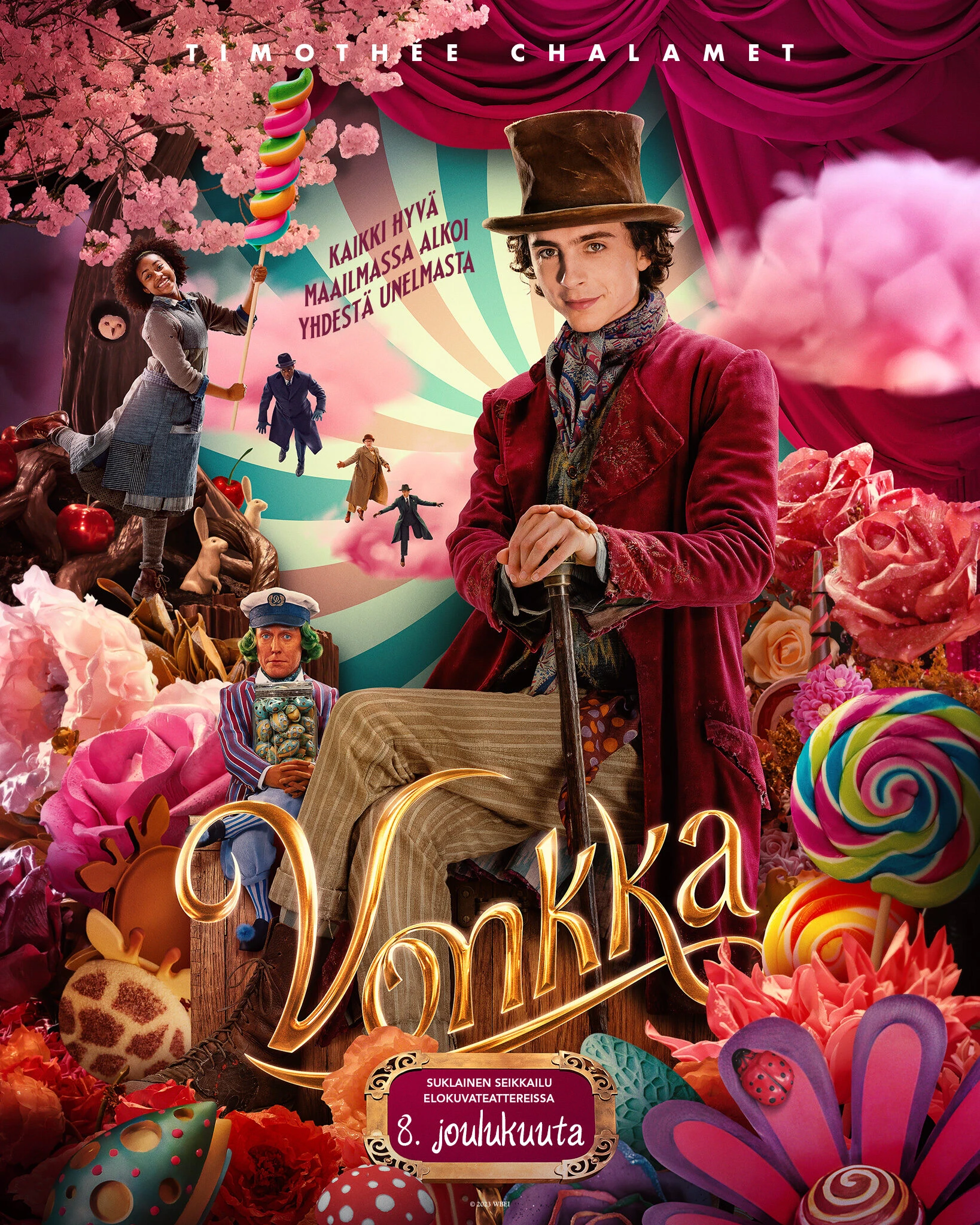 Paul King, joka kirjoitti ja ohjasi Paddington-elokuvat ja David Heyman, joka tuotti Harry Potter -elokuvat, ”Gravityn”, ”Ihmeotukset” ja ”Paddingtonin” sekä tuottajat Alexandra Derbyshire (”Paddington”-elokuvat, ”Jurassic World: Dominion”) ja Luke Kelly (”Roald Dahl’s The White Witches”) tarjoavat huumaavan sekoituksen taikaa ja musiikkia, kaaosta ja tunnetta, joka kerrotaan suurella sydämellä ja huumorilla. Timothée Chalamet esittää pääosaa tässä vastustamattoman vauhdikkaassa ja kekseliäässä laajakangasspektaakkelissa, joka kertoo Villi Vonkasta. Hänellä on loputtomasti ideoita ja hän on päättänyt muuttaa maailmaa herkullinen suupala kerrallaan ja samalla todistaa, että parhaat asiat elämässä alkavat unelmasta - ja että joka onnekseen tapaa Villi Vonkan huomaa, että mikä tahansa on mahdollista.
